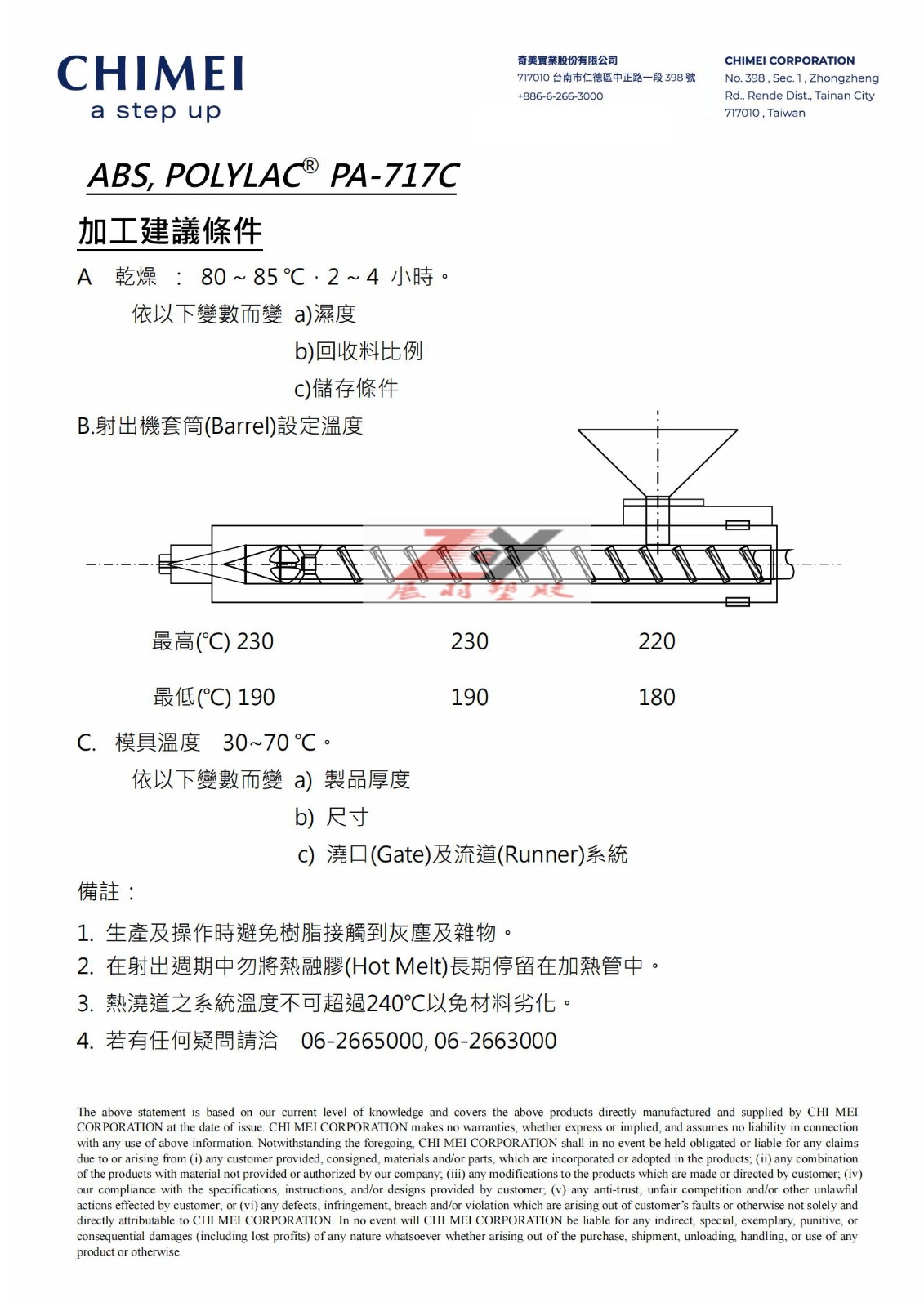 臺灣奇美 PA-717C 高沖擊強度 ABS樹脂 廚房用具/音響用品/洗衣機