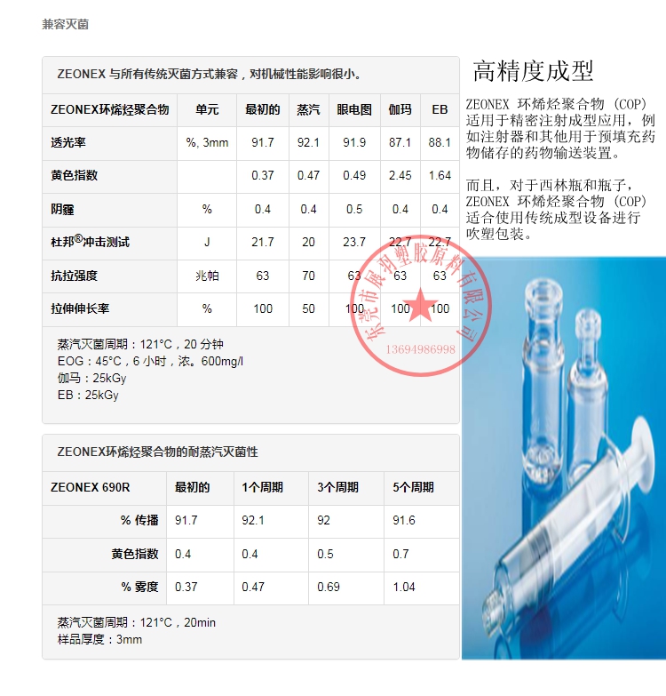 COC醫療級 ZEONOR 1020R 日本瑞翁 烯烴聚合物COP