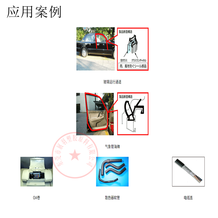 主要用途:汽車部品,電線被覆,防水?堵水板,工業部品