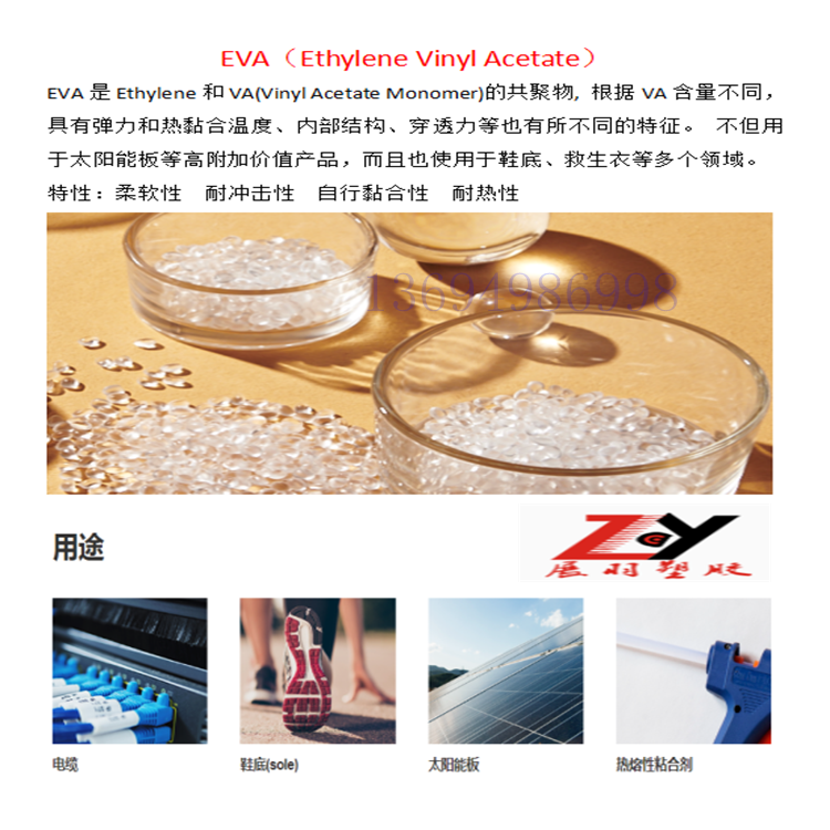 (1)發(fā)泡鞋材。鞋材是我國EVA樹脂最主要的應(yīng)用領(lǐng)域。在鞋材使用的EVA樹脂中,醋酸乙烯含量一般在15%~22%。由于EVA樹脂共混發(fā)泡制品具有柔軟、彈性好、耐化學(xué)腐蝕等性能,因此被廣泛應(yīng)用于中高檔旅游鞋、登山鞋、拖鞋、涼鞋的鞋底和內(nèi)飾材料中。另外,這種材料還用于隔音板、體操墊和密封材領(lǐng)域。