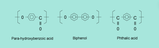 SUMIKASUPER LCP是工程塑料中有最高耐熱性的熔融液晶性全芳香性聚酯(Thermotropic Liquid Crystalline Polyester),具有下列的基本構造。是常為所知的液晶聚合物的一種。