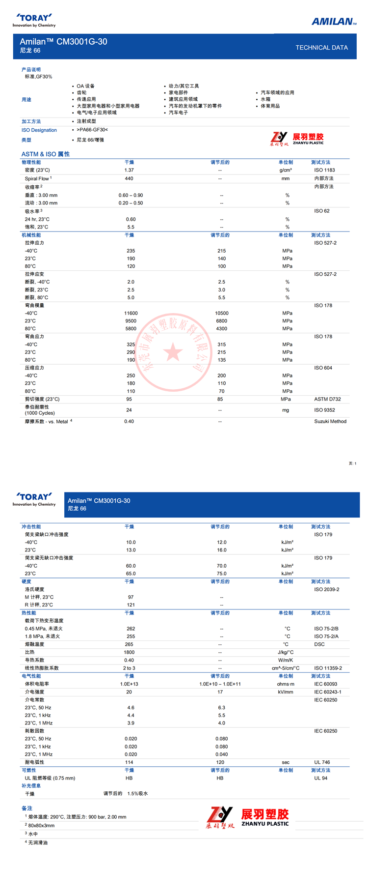 PA66 東麗 Amilan CM3001G30 玻纖增強30% 標準級 尼龍66增強 聚酰胺66