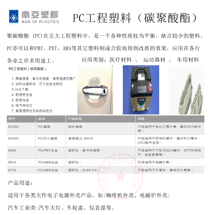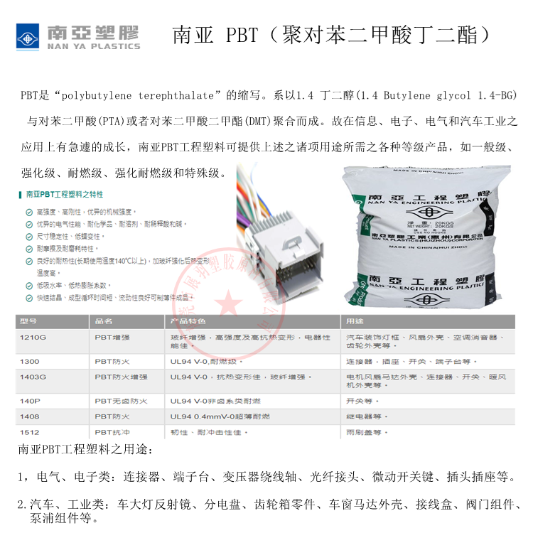 臺灣南亞工業塑膠系列 聚對苯二甲酸丁二酯 聚酰胺 聚丙烯 聚碳酸酯