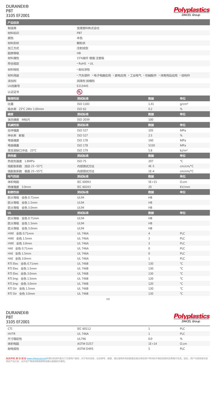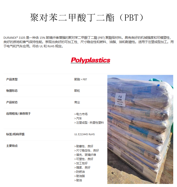 寶理 DURANEX® PBT 3105 EF2001 玻纖GF15 汽車部件 電子電器 家電應用