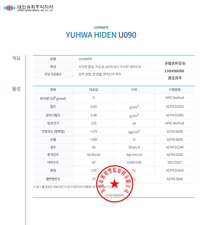 UHMWPE 大韓油化 YUHWA HIDEN U090 超高分子量聚乙烯 用于電池分離器