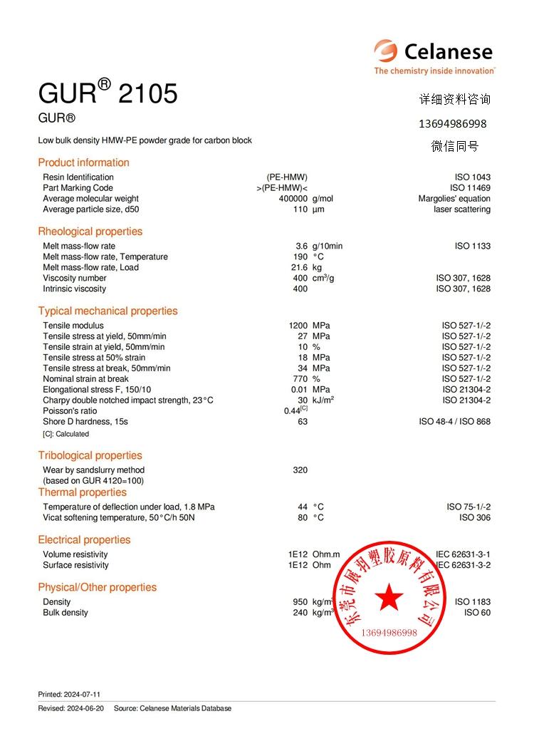 UHMWPE 塞拉尼斯 GUR 2105 (聚乙烯-HMW) 低堆積密度 HMW-PE 粉末級(jí)