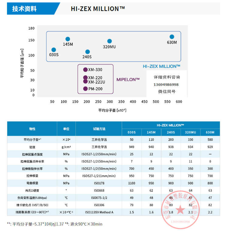 HI-ZEX MILLION™是三井化學獨立開發的平均分子量為50~600萬的超高分子量聚乙烯。由于它具有優異的機械特性,可用于產業器材、醫療器具、食品類等各種領域。