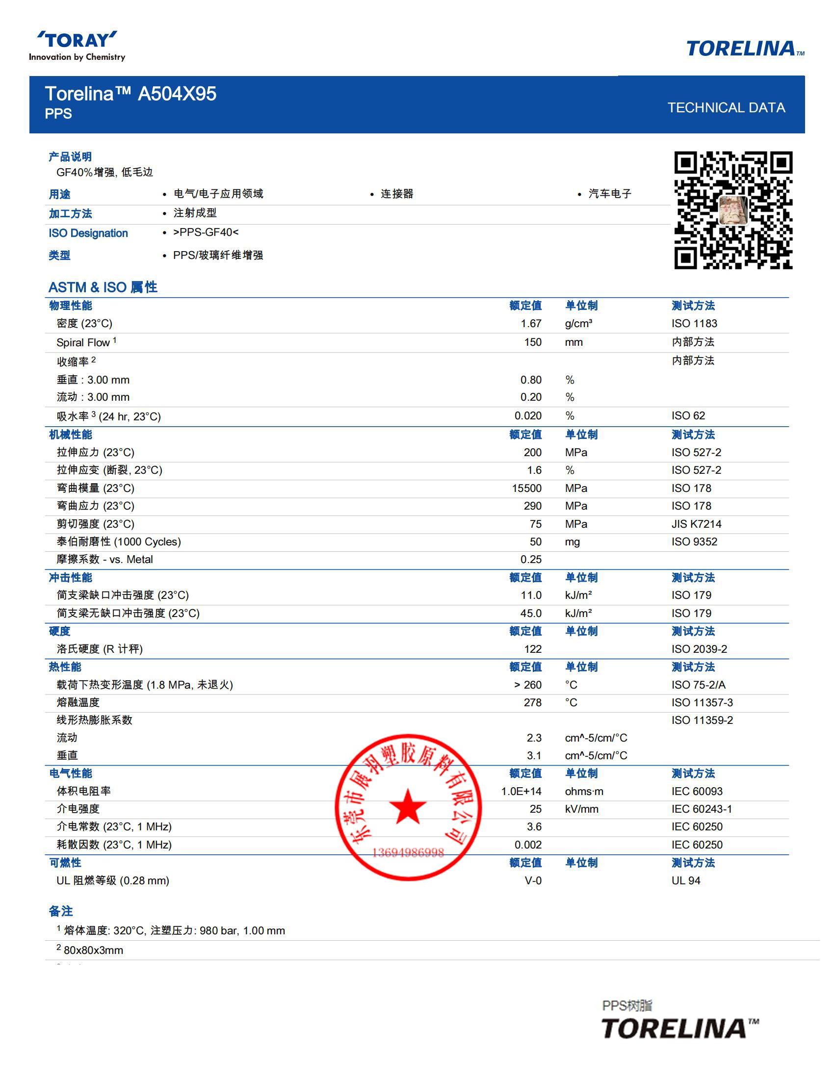TORELINA A504X95 Toray 日本東麗 40%玻璃纖維 阻燃性 聚苯硫醚(PPS)