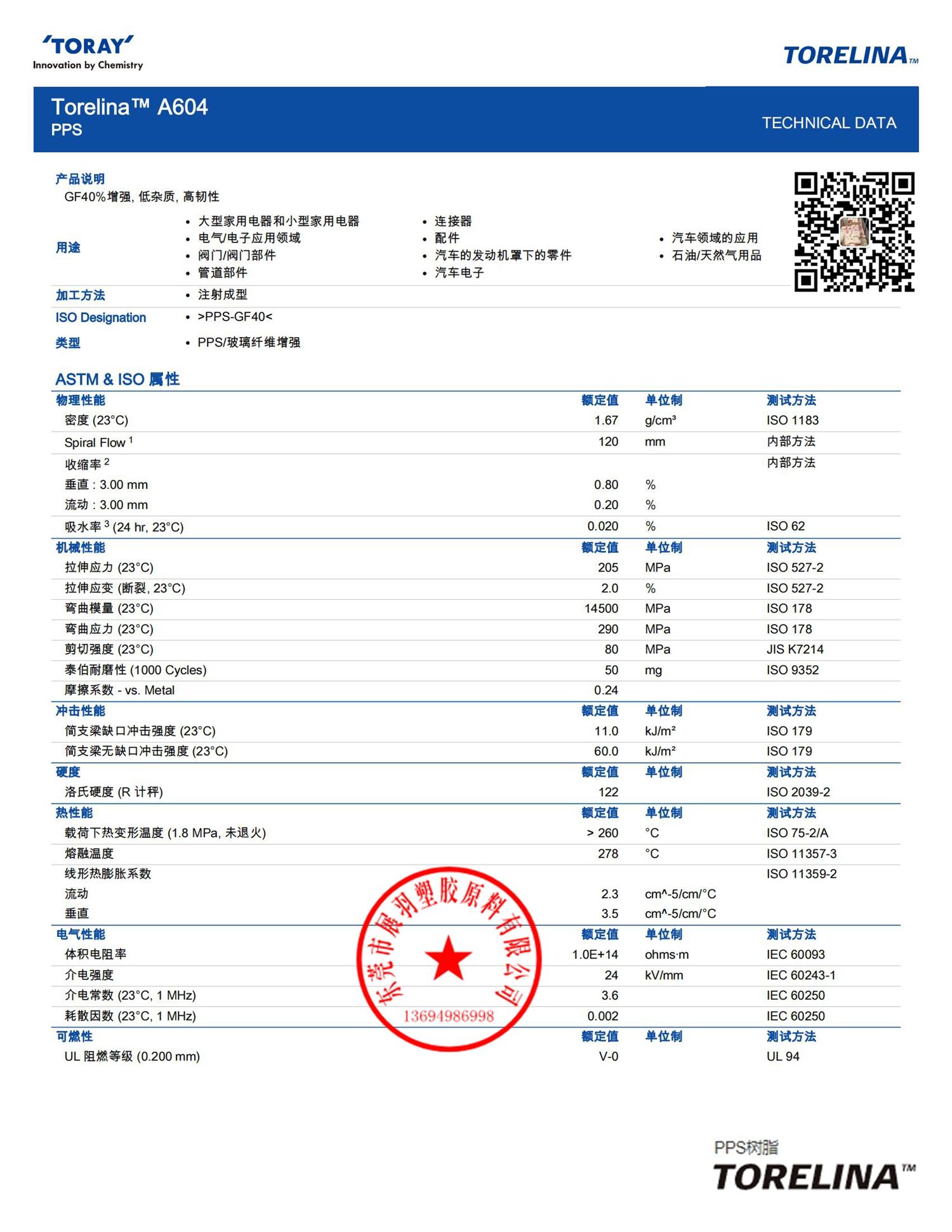 TORELINA A604 Toray 日本東麗PPS 40%玻璃纖維 阻燃型 線性聚苯硫化物