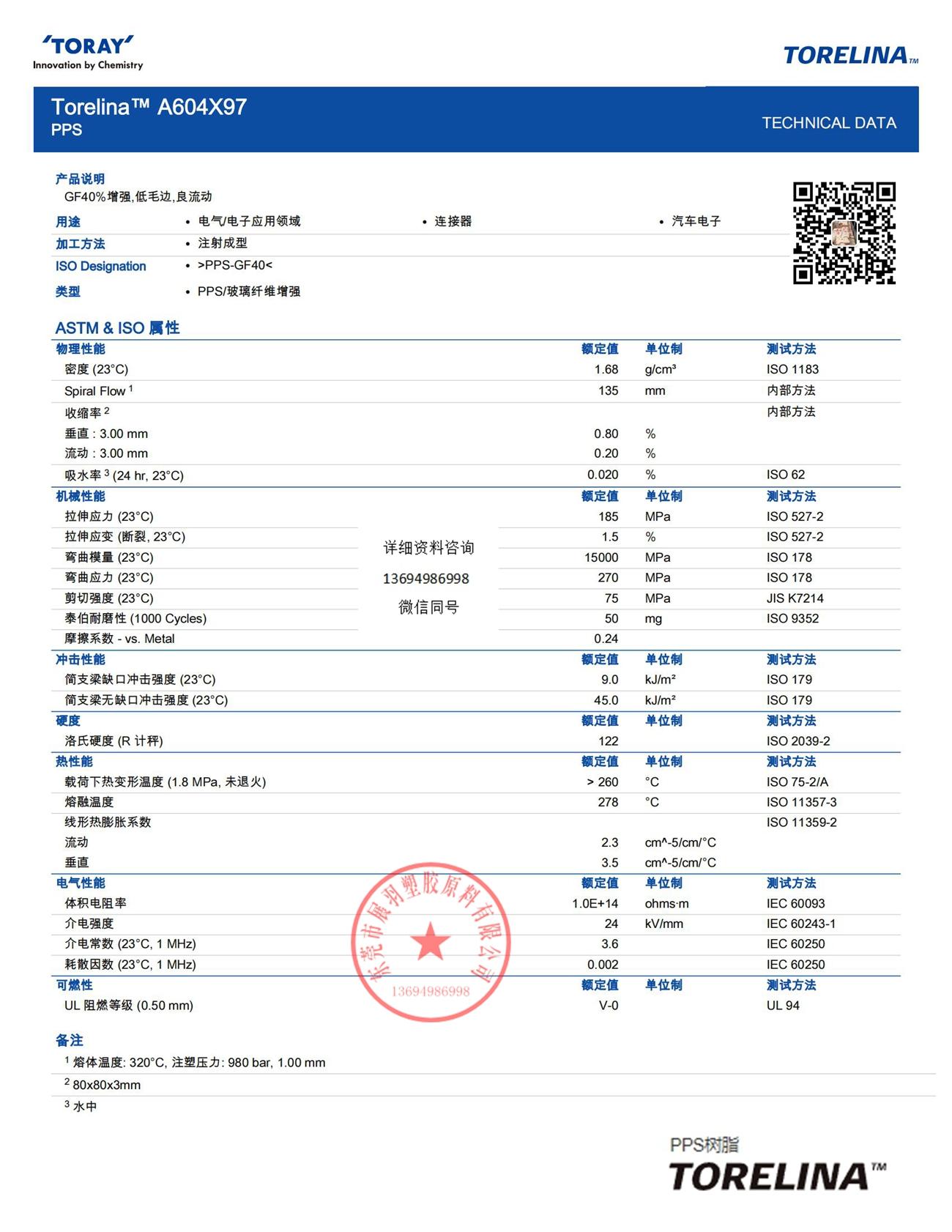 TORELINA A604-X97 Toray 日本東麗PPS 阻燃型 40%玻璃纖維 聚苯硫醚