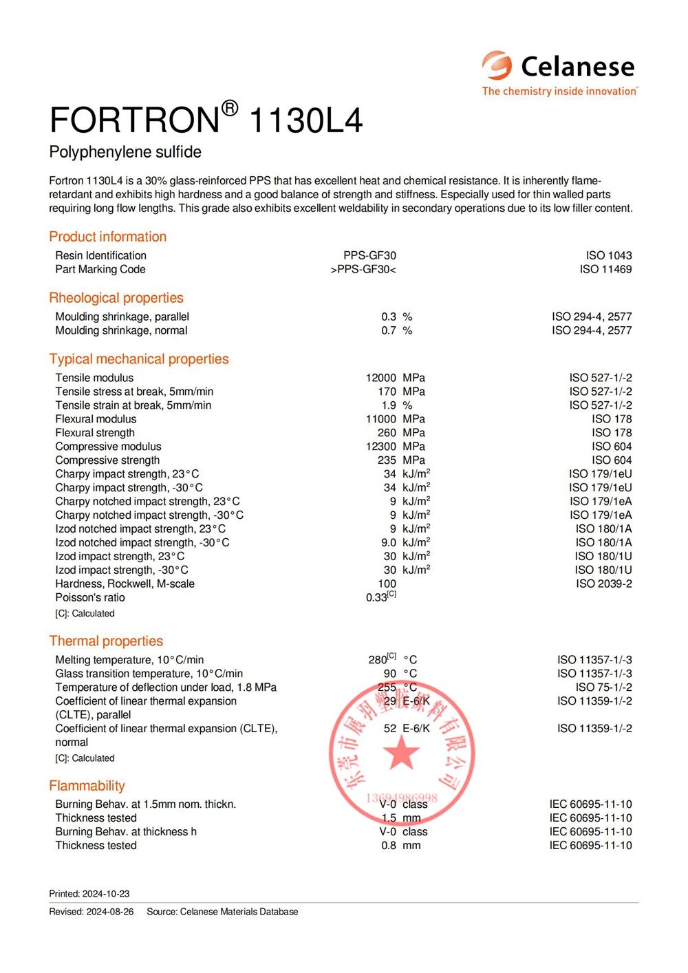 FORTRON 1130L4 (PPS-GF30) 30%玻璃增強 可焊性 阻燃V-0 聚苯硫醚