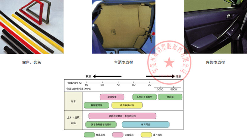 汽車部品,土木建筑用品,電線被覆,家電部品,運動用品