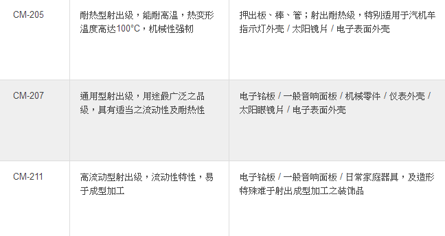 奇美壓克力(ACRYREX)PMMA,乃是奇美公司,以其三十年制造壓克力板之經驗,引進美國連續制程技術,以丙烯酸甲酯(MMA)為主要原料,而制造成功之模塑料,具有良好之耐候性與耐熱性,及極高之透明度與光澤度,同時具有穩定之物理、化學、光學與電學等特性??蓮V泛地使用于電子面板、機械零件、鐘表面殼、汽機車指示燈、電訊器材、絕緣零件以及太陽眼鏡等。