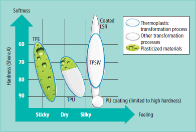 應用具有專利的動態硫化技術研發而成的TPSiV,與通常的熱塑性彈性體相比,具有如下特性: