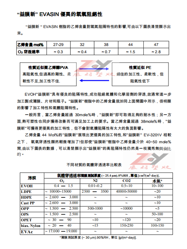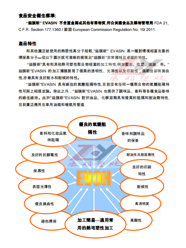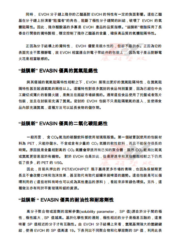 臺灣長春(EVOH)聚乙烯乙烯醇 EVASIN 益膜新特性用途說明