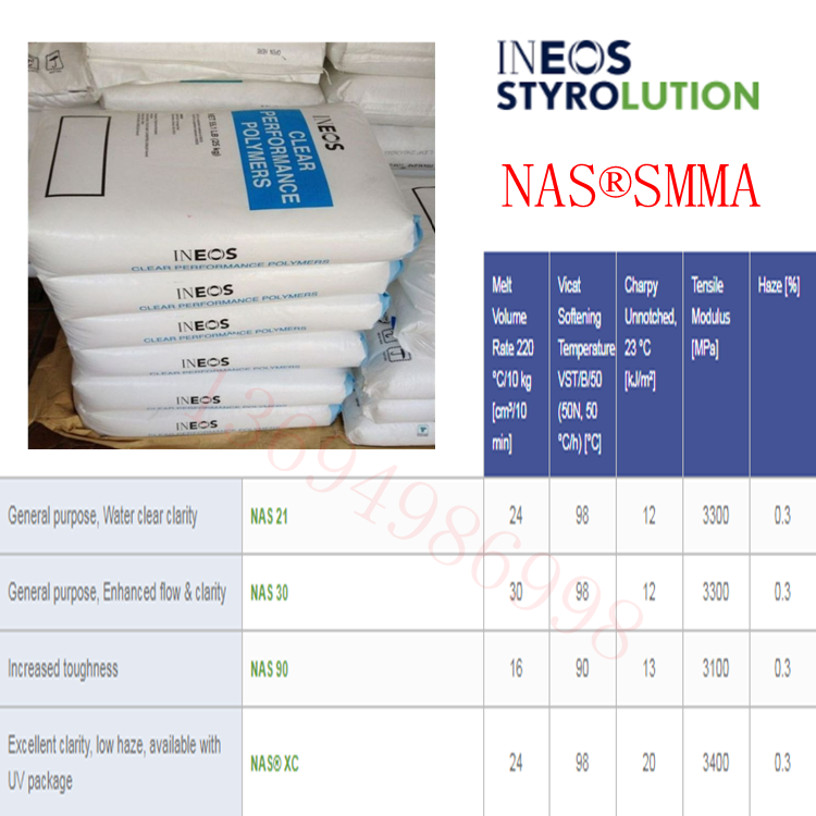 SMMA熱穩定性較佳,可利用的再生料較多可達100%。比重較輕,生產同等數量制品可以比其它透明塑料減省用料多達20%。SMMA(在大多數情況下)無須進行干燥處理,減少用電成本,提高生產效能。成型周期較快,較多可縮短50%的時間,因而提高機器利用率。注塑加工溫度較低,較多可降低攝氏65度(華氏150度),因而降低用電成本。 注塑加工容易,減少操作人員培訓,制品成品率高,能有效控制生產成本。折射率比PMMA高,令制成品具有極佳的晶瑩度。