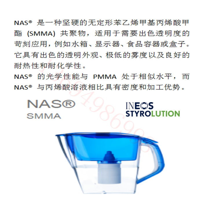 SMMA耐化學性好,特別是耐酒精性極好。流動性高,特別適合厚件和大體積制件。成型后較少回縮,可減少再加工。色澤透明,配色容易,配色時色母用量少。使用通用注塑機和鑼桿,減少設備投資。制成品可作真空電鍍、印刷等裝飾。